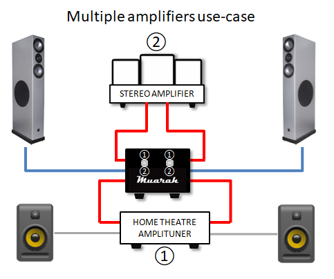 Die Muarah APS - Audio Power Switch ermöglicht den Anschluss von zwei Paar Lautsprechern an einen Stereoverstärker oder umgekehrt: zwei Verstärker an ein Paar Stereolautsprecher.